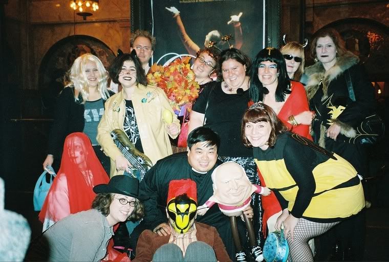 (l to r) top row: Stacy as Heavy Metal Drummer, Gina as Cat Sansone, Kyle as Napoleon Dynamite, me as the Autumn Defense, Brianne as Spiders, Kristina as Cleopatra, Angela as Hell is Chrome, Dunja as spiders. bottom row: Rosie as a Cherry Ghost, Alison as old timey Sherriff, Kris as "the Bee" Paul as Theologian, the spud as Cheney, Sooz as Queen Bee.